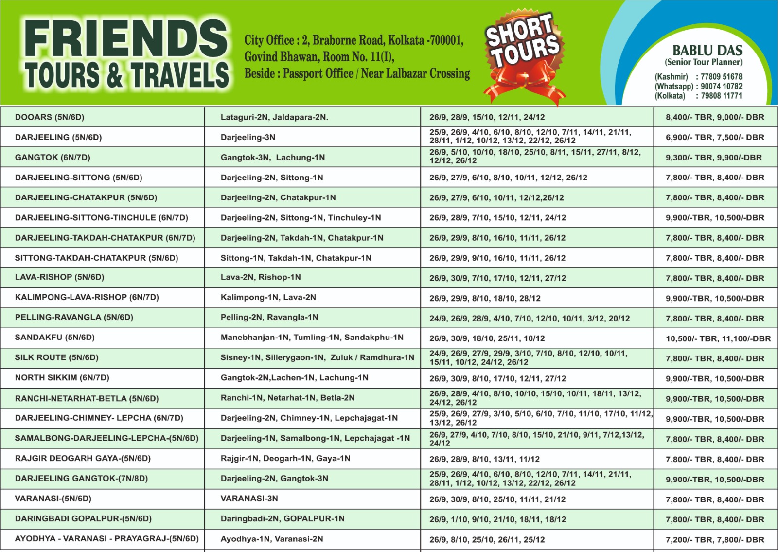 Founded in 2019, Friends Tours and Travels has become one of West Bengals leading travel agencies, renowned for our commitment to customer satisfaction and personalized service. Our team of experienced travel experts is passionate about crafting unique and memorable journeys tailored to your interests and preferences.