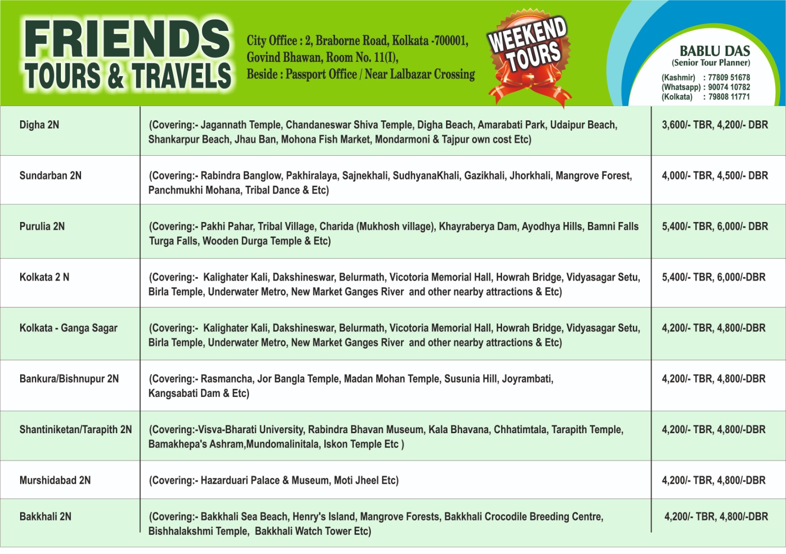 At Friends Tours and Travels, we are dedicated to providing you with unforgettable travel experiences across the enchanting state of West Bengal. Our comprehensive travel services are designed to showcase the rich cultural heritage, breathtaking landscapes, and vibrant city life that make West Bengal a must-visit destination.